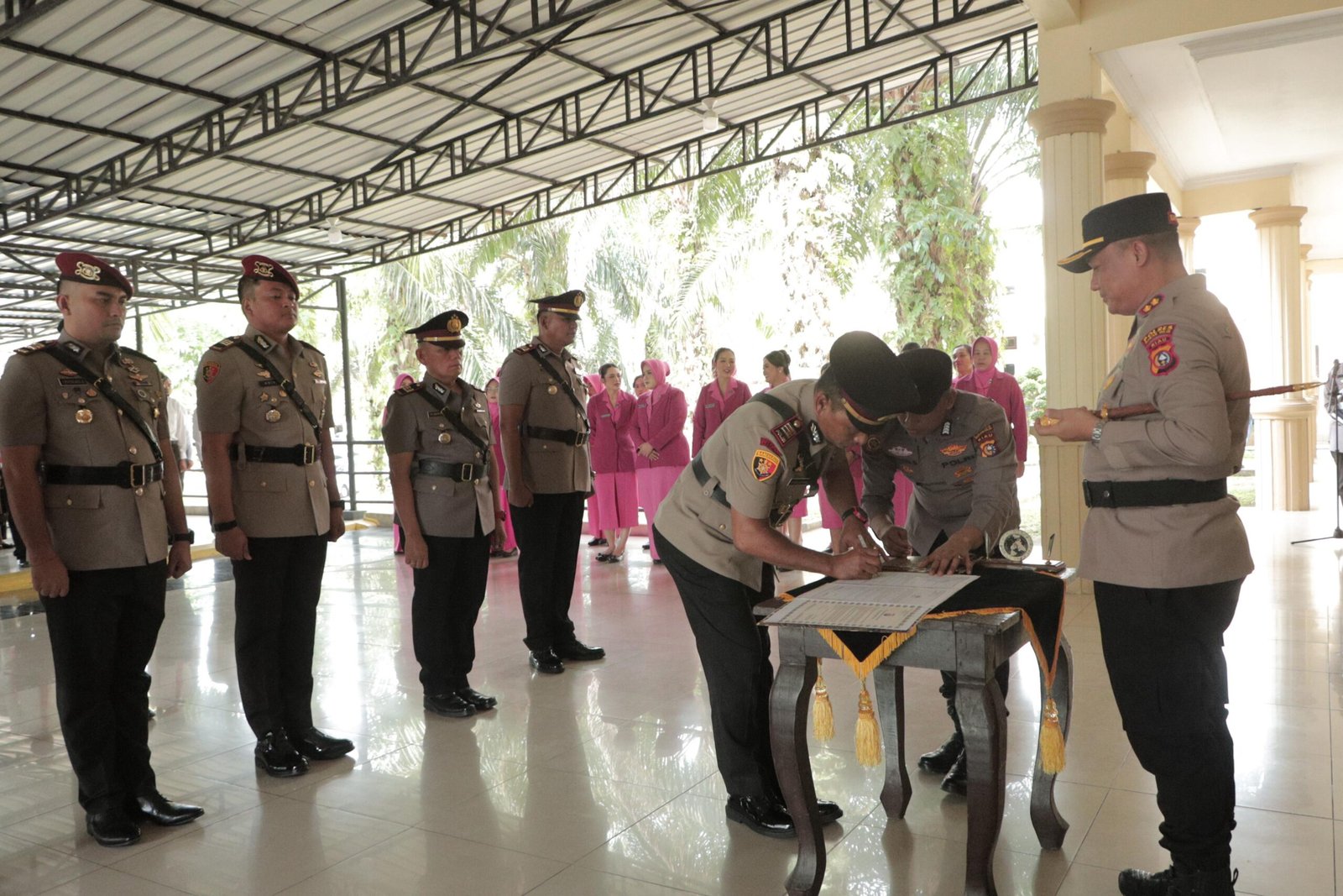 Total terdapat 6 jabatan yang diserahterimakan, meliputi Kabag SDM, Kasat Reskrim, Kasat Samapta, Kasat Polairud, Kapolsek Bagan Sinembah, dan Kapolsek Bangko Pusako.